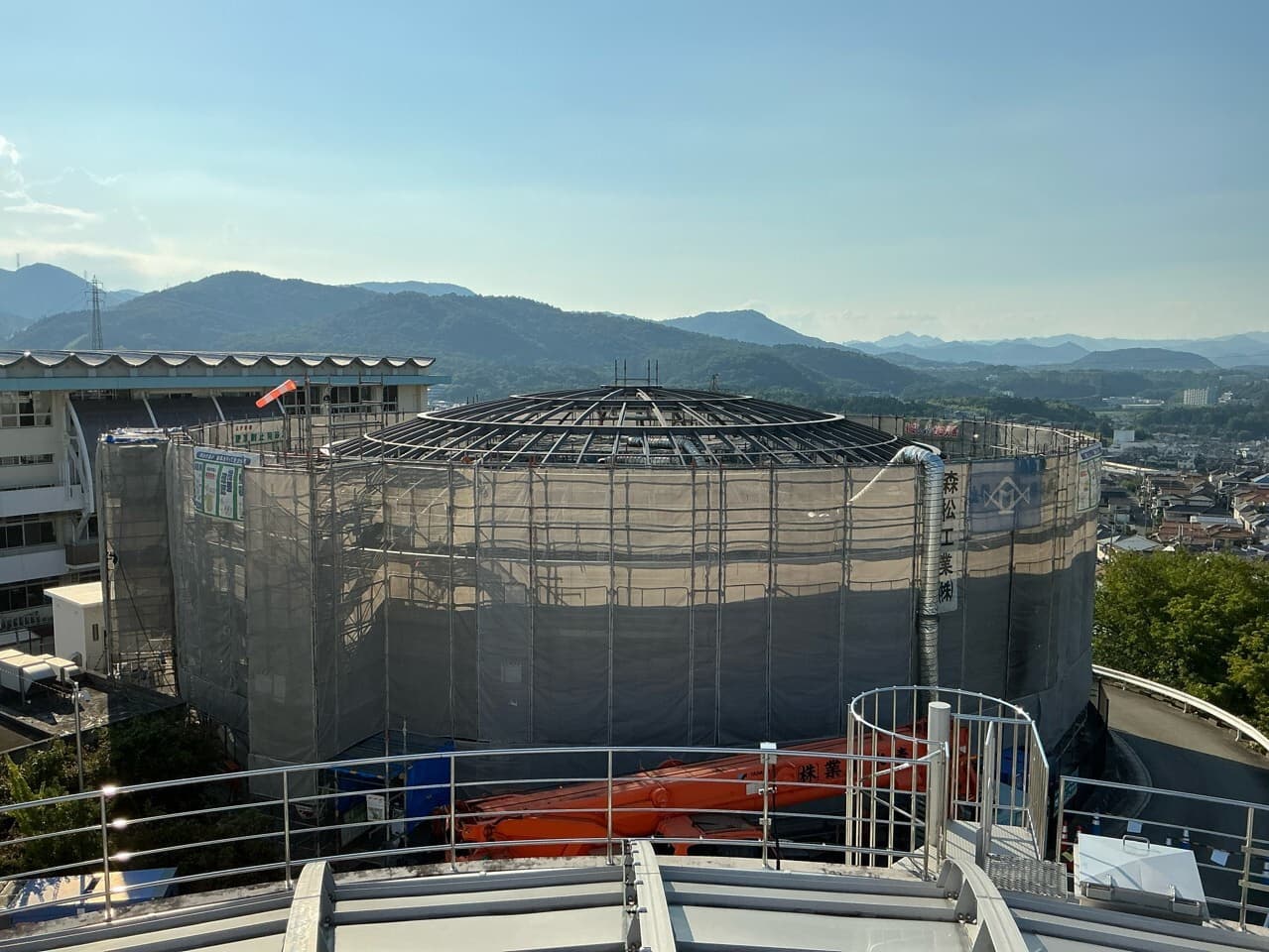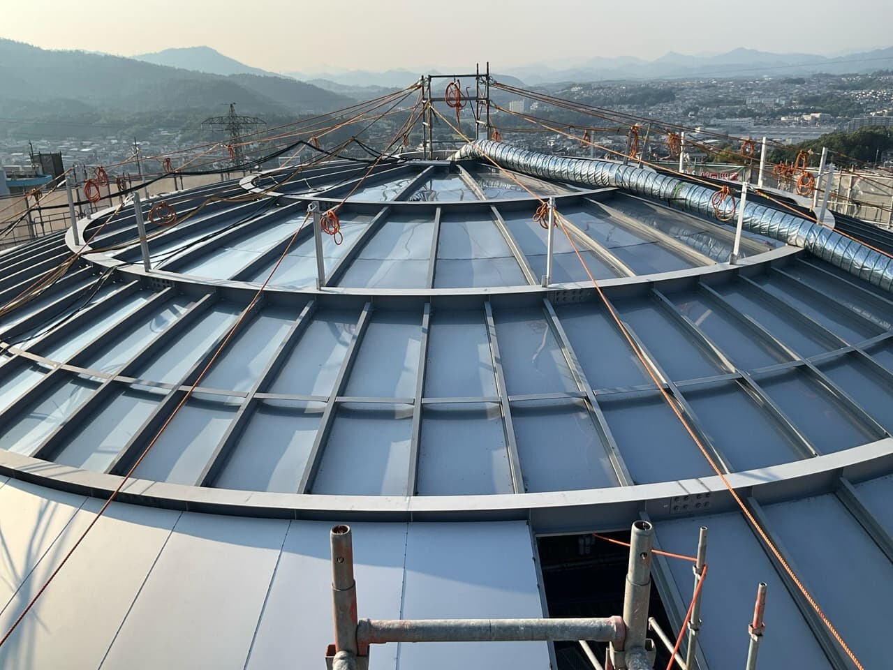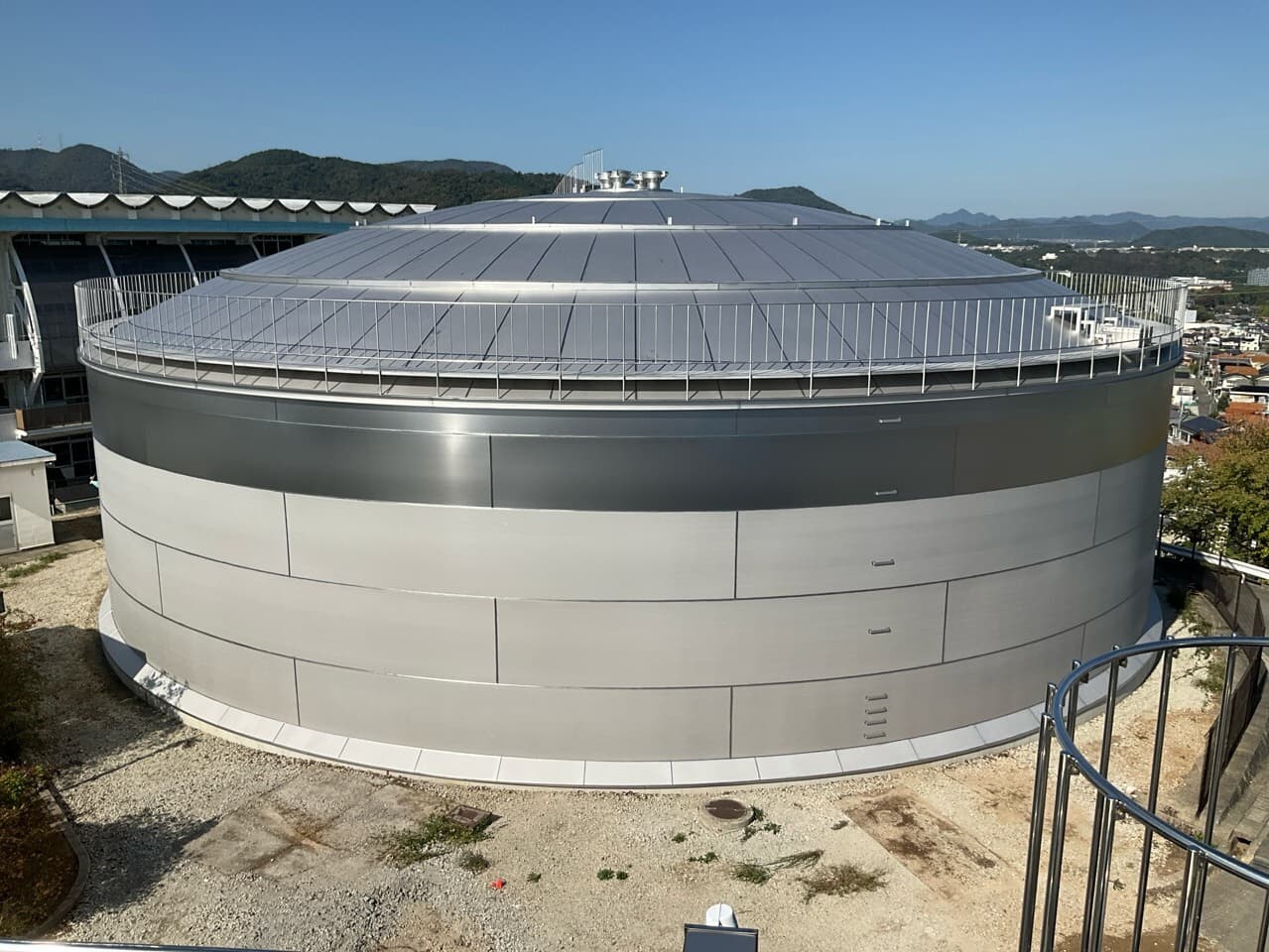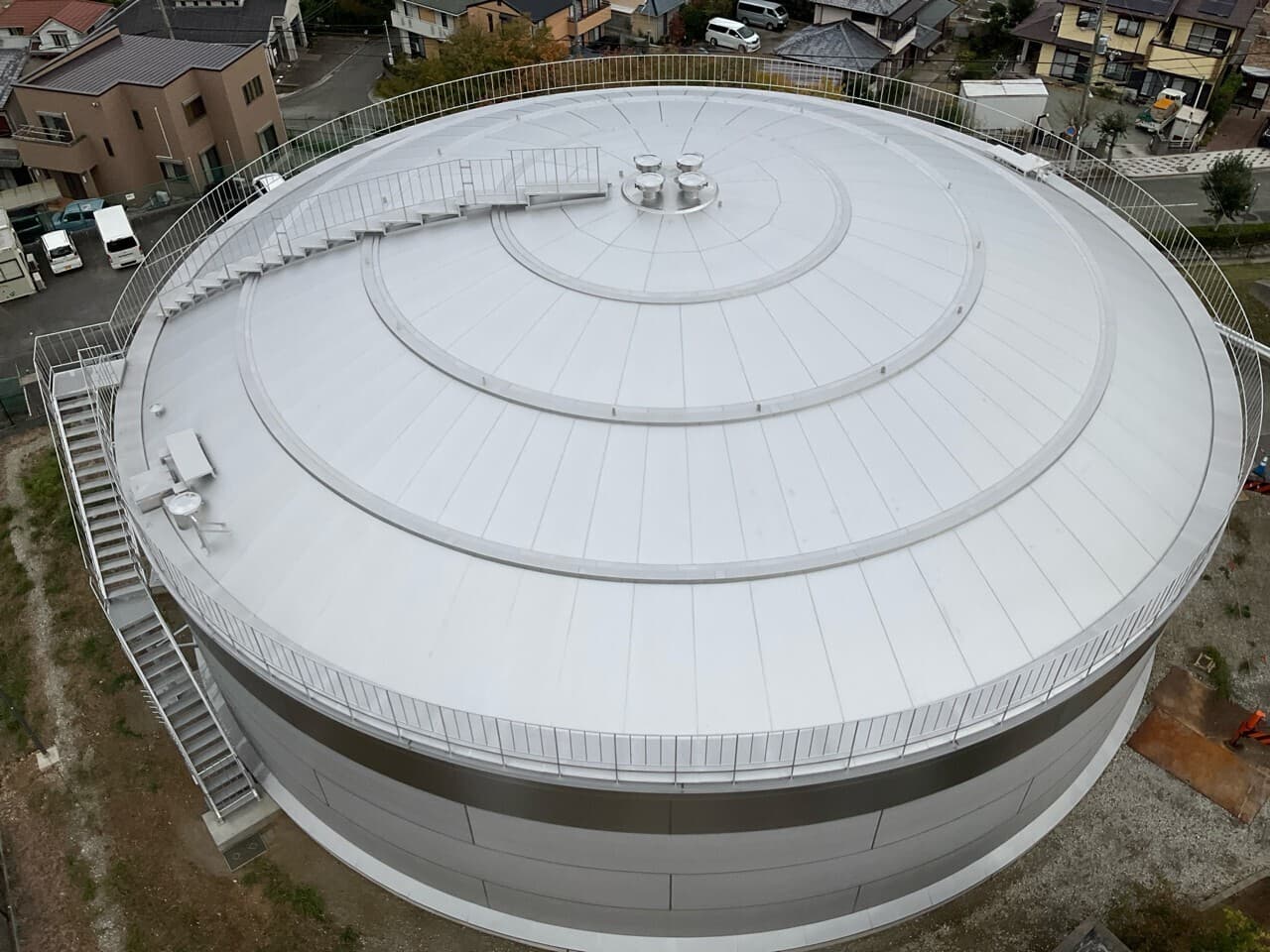 7月末で配水池天井の梁となるリングラフターの組立が完了しました。